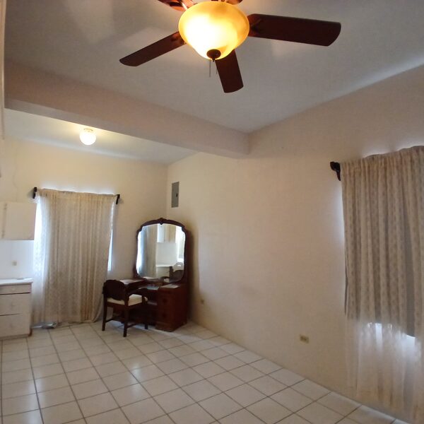 There is also extra space on the property to build additional structures or for parking. The yard is fully fenced with concrete blocks, has two entryways, and includes two 5,000-liter Rotoplas water cisterns. Access to the upper floor is via two concrete stairways—one from the front verandah and one from the back.