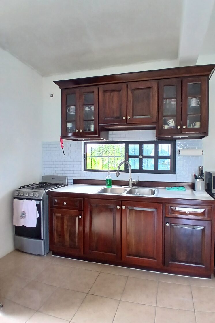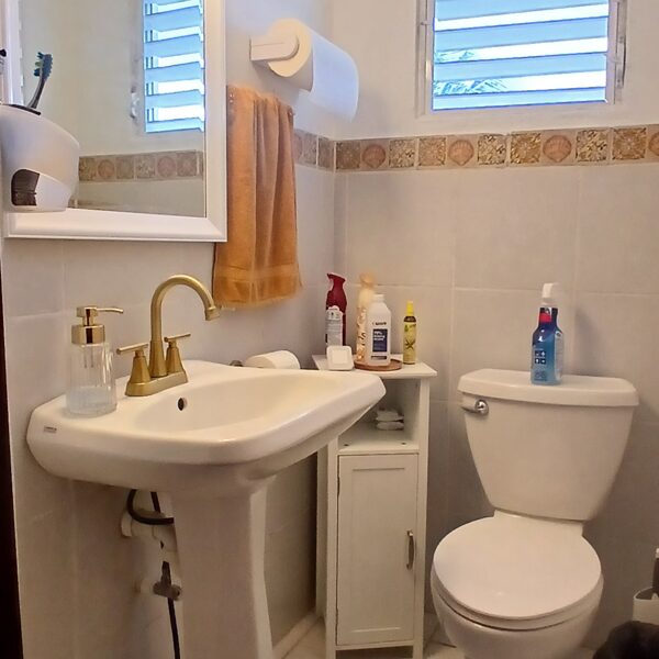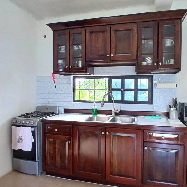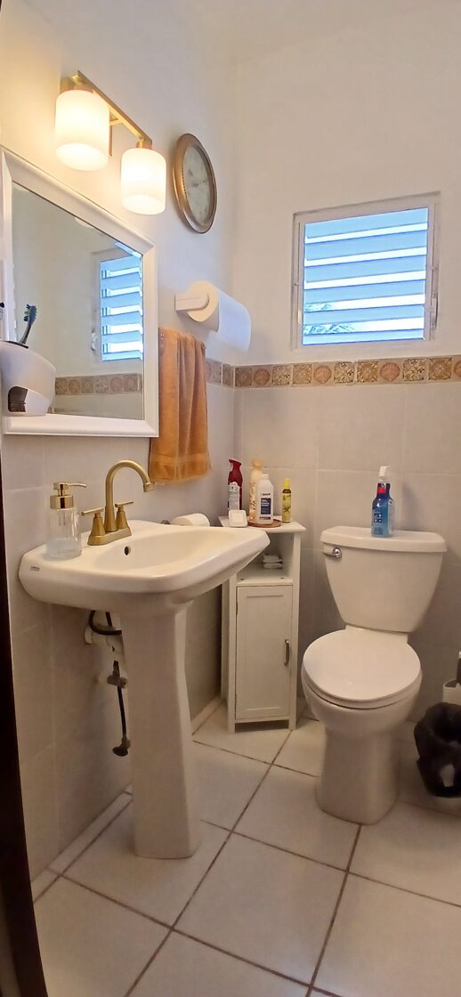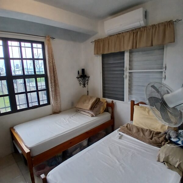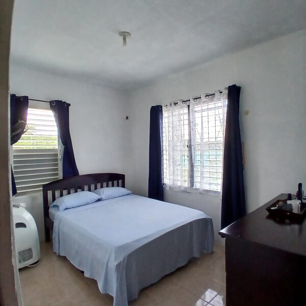 The two bedrooms, one full and one-half bathroom, as well as the laundry room, are located on the south side of the house. One bedroom offers a lovely view of Corozal Bay, while the second overlooks the nearby football field.