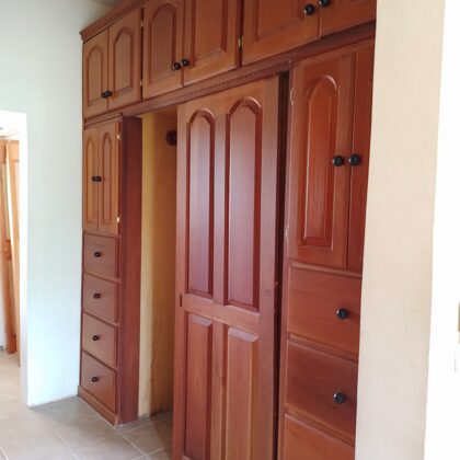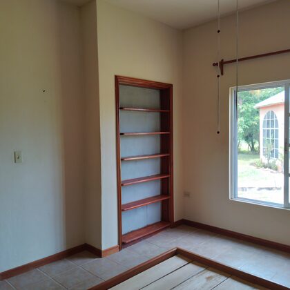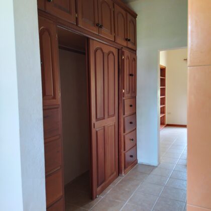 - This unusually spacious home has excellent ventilation throughout. The two bedrooms are separated by the main living area, which makes them very private. Both bedrooms have AC and ceiling fans in every room of the house. The master bedroom is spacious with a full-width mahogany ventilated closet. A separate study or TV room with the other bedroom on the other wing has plenty of tropical wood closets and an individual toilet room with a door, a big Mexican-style sink, and a separate shower.